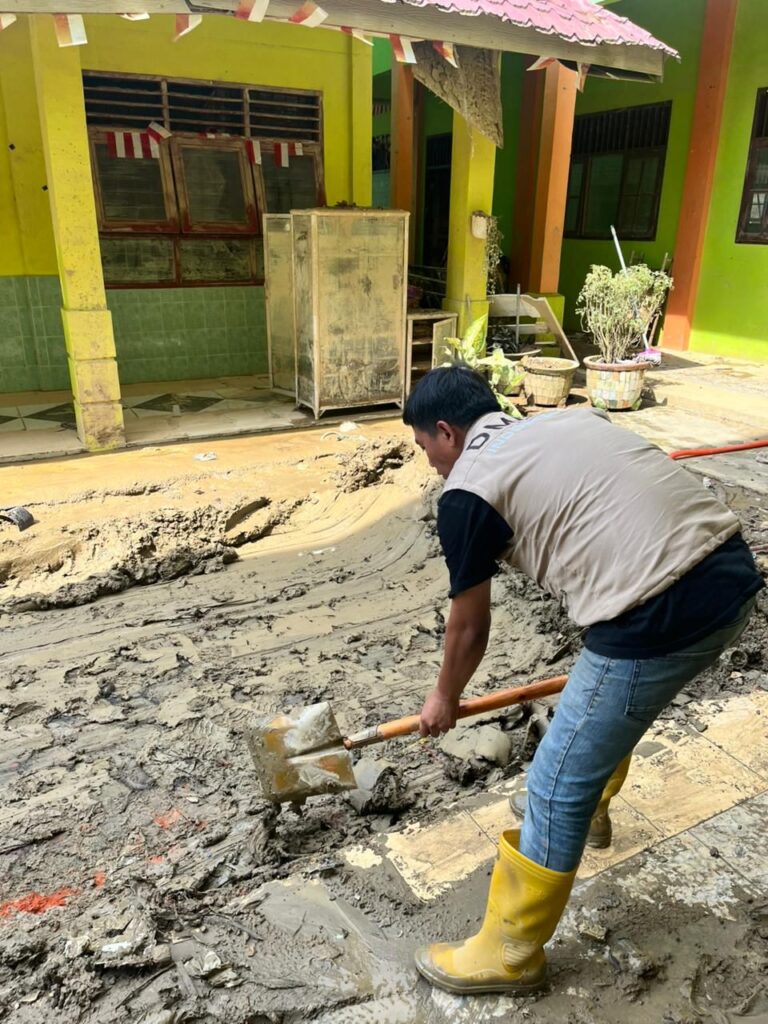 Sejak pagi, para relawan DMDI Indonesia langsung melakukan pembersihan secara menyeluruh. Mereka menyasar ruang kelas, halaman sekolah, serta fasilitas umum yang sering digunakan siswa dan guru.