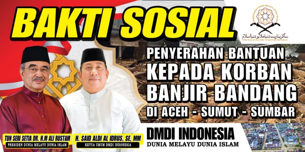 Presiden Dunia Melayu Dunia Islam, Tun Seri Setia Dr. H.M. Ali Rustam, bersama Ketua Umum DMDI Indonesia, H. Said Aldi Al Idrus, SE, MM, menyampaikan langsung keprihatinan mendalam atas musibah yang menimpa masyarakat di wilayah terdampak.