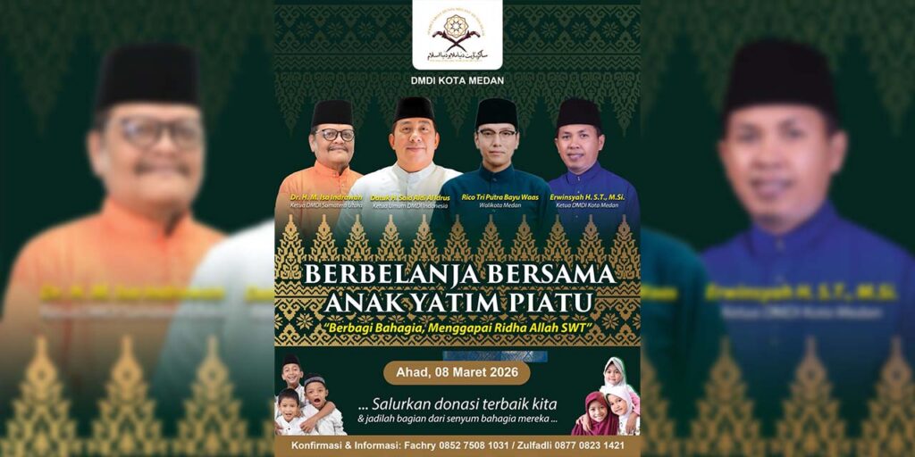 Dunia Melayu Dunia Islam (DMDI) Kota Medan menginisiasi program Belanja Yatim dalam rangka menyemarakkan Ramadhan 2026. Kegiatan ini akan berlangsung pada Ahad, 8 Maret 2026, sebagai wujud kepedulian terhadap anak yatim piatu di Kota Medan.